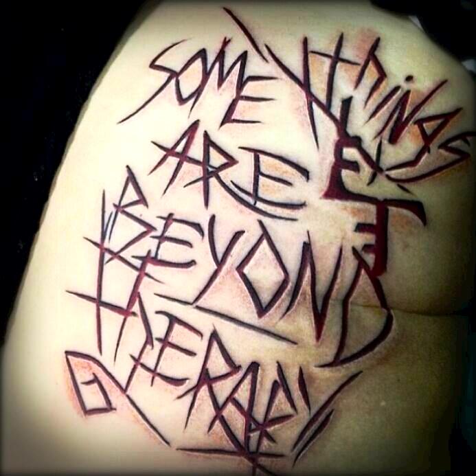 What’s next.. hummm.. let’s see. There is a story behind the demon hand and the lyric carved into my side. Basically, in a nutshell, most people try to get rid of their inner demon. I embrace mine. I’ve also discovered the whole Supernatural fandom. So, I’m thinking my next tattoos will be something Supernatural-related that also ties with the whole “keeping my demon in” theme.